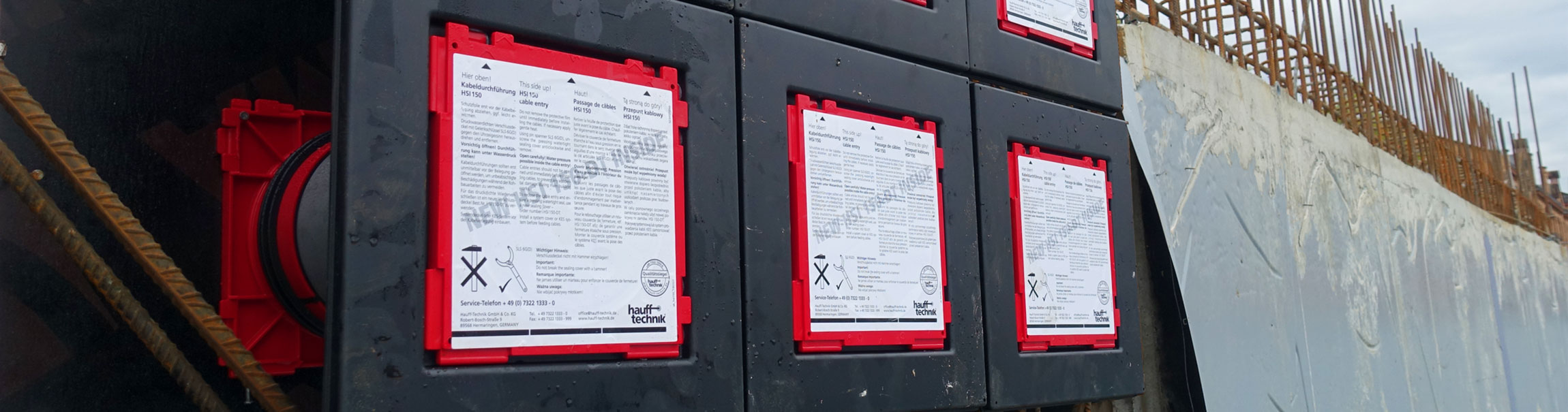Pour les composants de pénétration et les solutions d'étanchéité, il est toujours important de convenir avec le fabricant d'utiliser un système adapté. C'est pourquoi les concepts de solutions de raccordement entre les fabricants de systèmes composites pour béton frais et les fabricants de pénétrations et de raccordements doivent être coordonnés. Si la solution est testée conjointement, il est possible de garantir un raccordement fiable des composants de pénétration et d'étanchéité au niveau de l'étanchement de surface. Nos produits ont été testés avec différentes bandes composites pour béton frais et offrent une solution système optimale.