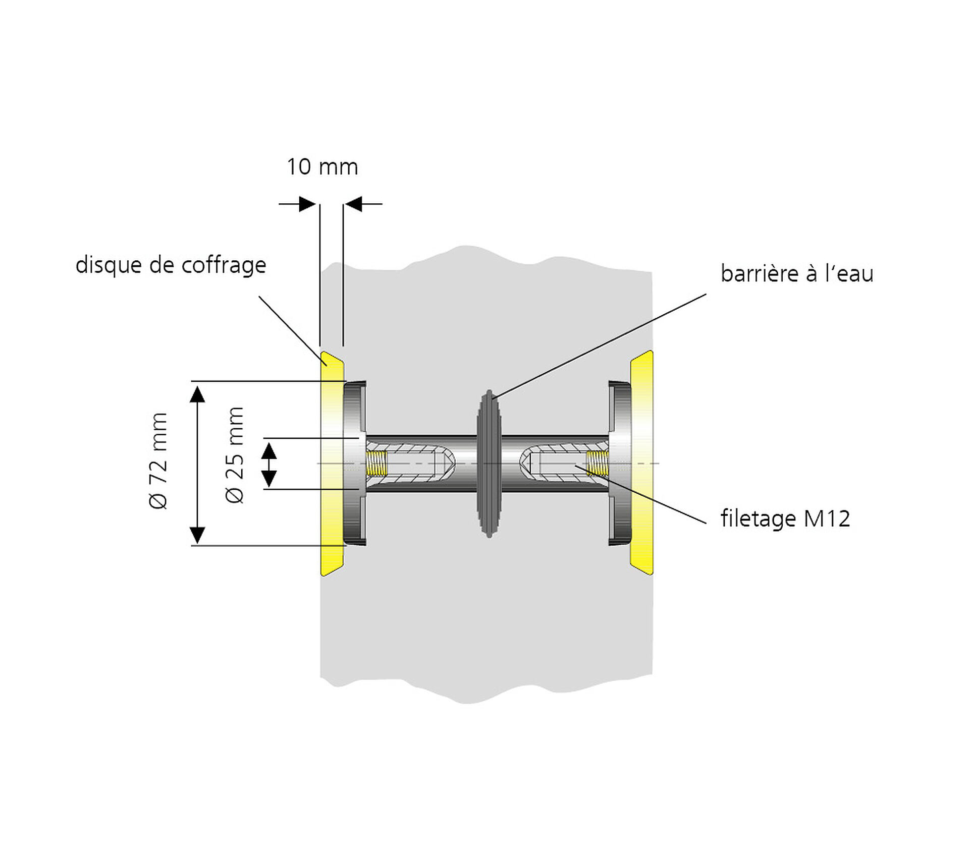 Pour placement à fleur de coffrage dans béton étanche. Des connexions de mise à la terre peuvent être effectuées par le biais d'un filetage bilatéral dans le conducteur.
